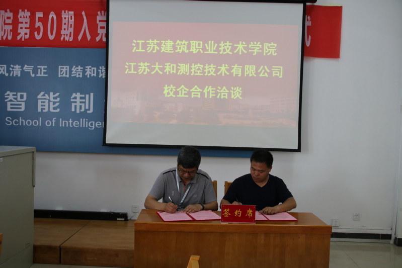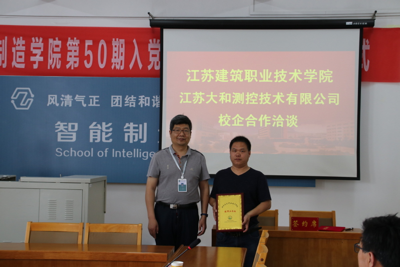 随后,双方签订了校企合作协议。智能制造学院院长仇文宁、校企合作处处长娄志刚分别和江苏大和测控技术有限公司总经理吴新军、副总经理夏中原进行了教师工作站、学生就业实习基地授牌。