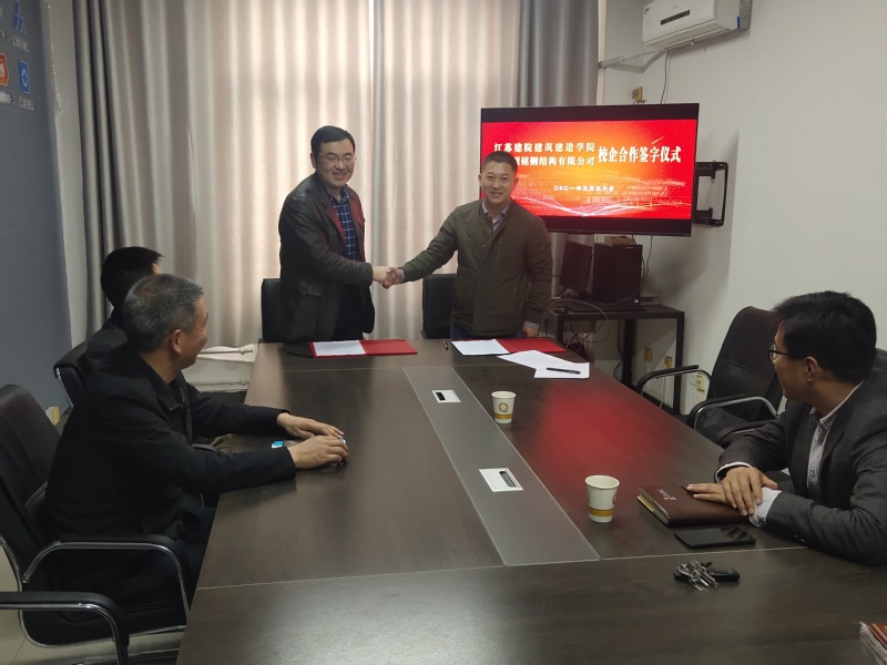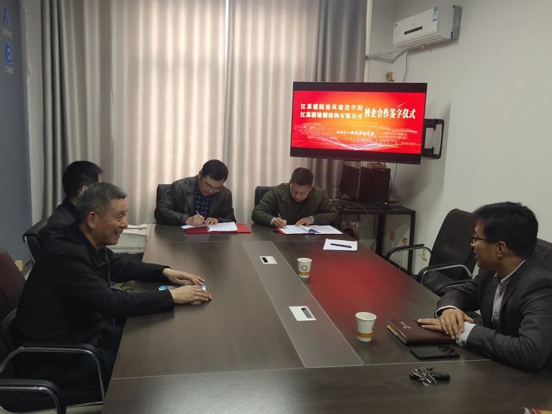 3月30日下午,江苏联铭钢结构有限公司与建筑建造学院在学院会议室举行校企合作签约仪式。公司总经理张西峰,建筑建造学院领导班子、专业负责人、校企合作处相关负责人参与签约仪式。会议由校企合作处处长娄志刚主持。